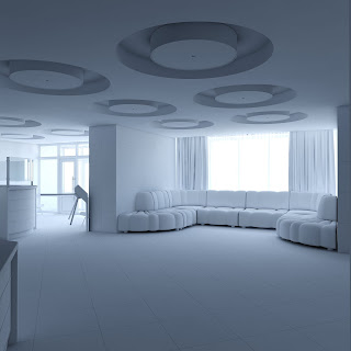 Это уже более поздняя работа. Также не коммерческий проект. Хотелось отрендерить "белый интерьер"... что-нибудь журнальное :-). Вроде получилось. Дизайн мой - просто придумал комнату и наполнение. Диванчик получился прикольный...